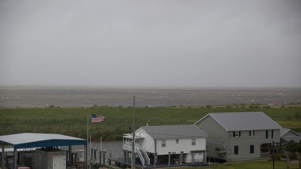 A US national flag flutters in high winds in Plaquemines Parish, Louisiana on July 12, 2019, ahead of the arrival of Tropical Storm Barry. (Photo: Seth Herald/AFP/Getty Images)