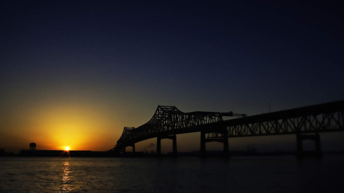 Sun sets on the Mississippi River bridge in Baton Rouge. (Photo: Getty Images)