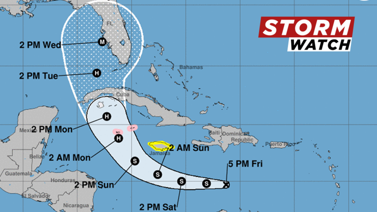 A hurricane watch was issued for the Cayman Islands and a tropical storm watch was placed on Jamaica.